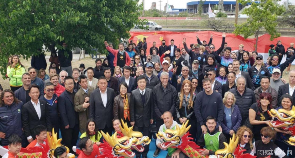 10月8日,“庆祝中华人民共和国成立73周年暨中国与阿根廷建交50周年龙舟大赛”开幕式在布宜诺斯艾利斯省阿韦亚内达市隆重举行。中国驻阿根廷大使邹肖力夫妇、阿根廷国土发展和人居部部长豪尔赫·费拉莱西夫妇、阿韦亚内达市市长阿莱霍·乔诺布洛夫、拉瓦列将军市市长何塞·罗德里格斯·庞德,以及在阿中资机构和华侨华人代表、参赛龙舟队队员、当地民众等500余人出席。