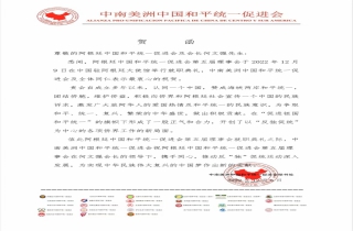 悉闻,阿根廷中国和平统一促进会第五届理事会于2022年12 月9 日在中国驻阿根廷大使馆举行就职典礼,中南美洲中国和平统一促进会及全体同仁表示最衷心的祝贺。