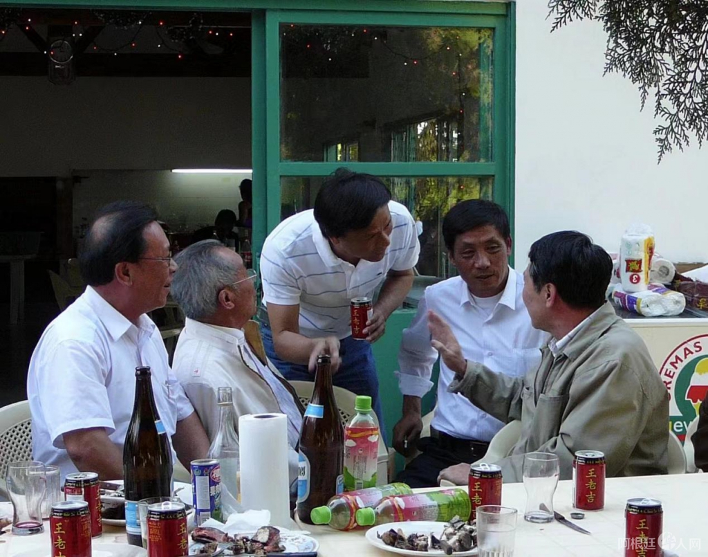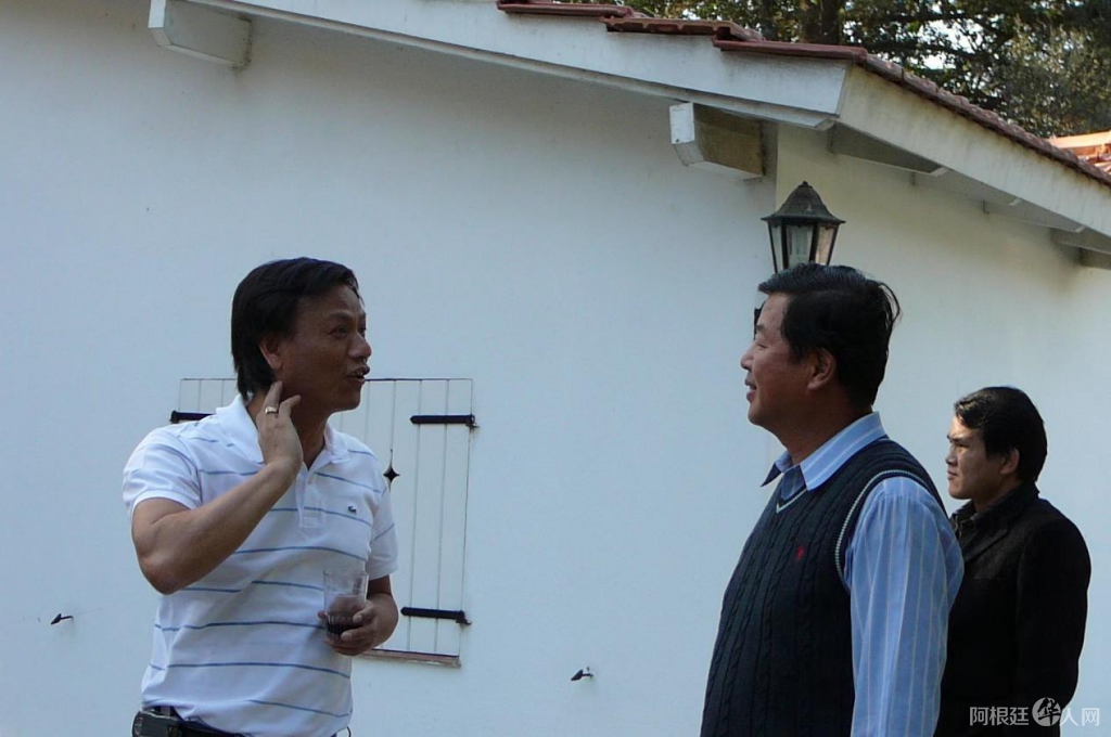 图为,中方设计施工人员到达阿根廷的4月28日当晚,中国城管委会会长王庆苍先生在他的庄园,为中方设计施工人员举行欢迎宴会。中国驻阿大使曾刚先生夫妇、政务参赞蔡维泉先生,以及和平统一促进会袁建平先生等参加欢迎宴会。