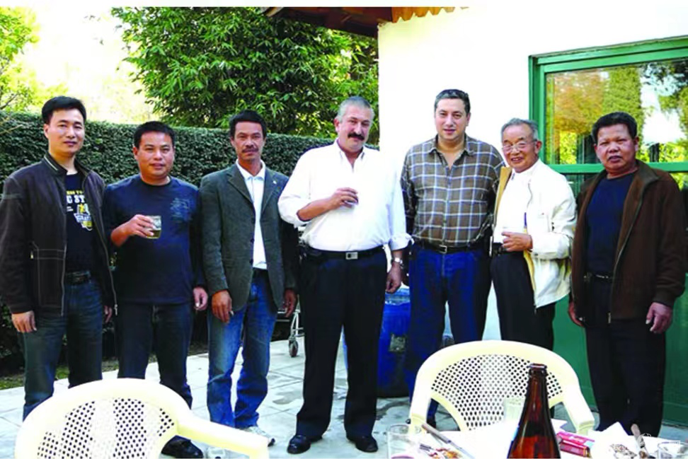 布市旅游局局长罗德里格(右3)阿方建筑师米格尔(右4),在中国城管委会会长王庆苍先生的庄园出席欢迎晚宴时,与中方设计施工技术人员合影。