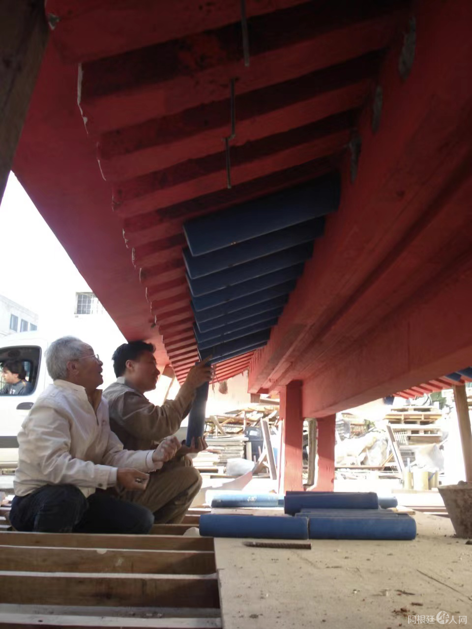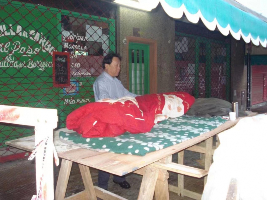 为了避免构建丢失,华侨黄依太老先生,不惧寒风,在街道旁临时搭铺,一直在为工地守夜看护。从工程开始到结束,整整一个月不回家,令人感动。