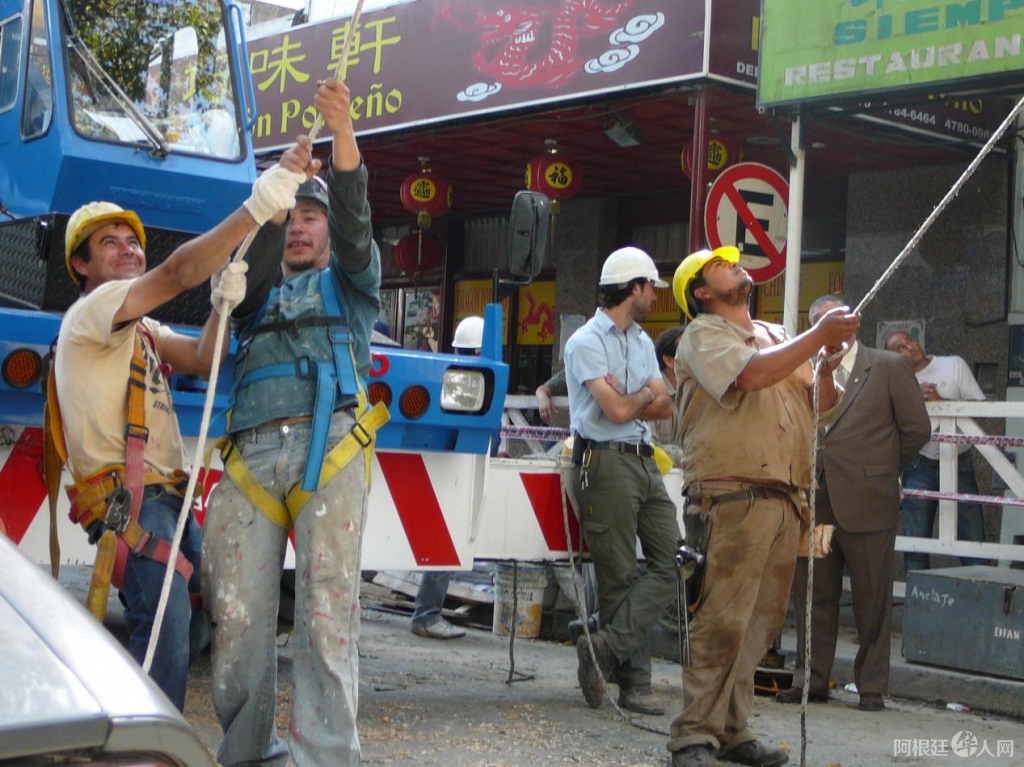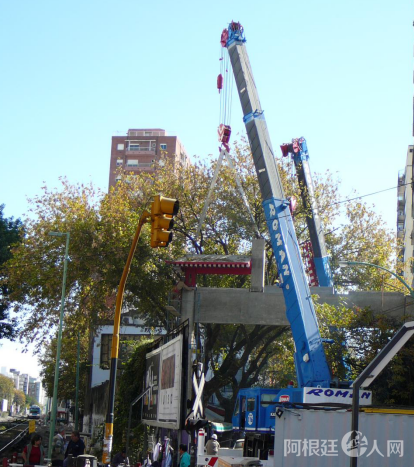 吊装工程必须申请断路。市政府批准断路时间,仅限于半夜12时至清晨8点止,为此,吊装工作必须在这个时间段进行。在断路期间,阿根廷警官开来警车,拉起界标以及围栏。并由多人值班为吊装工程护卫,值至吊装工程完成。