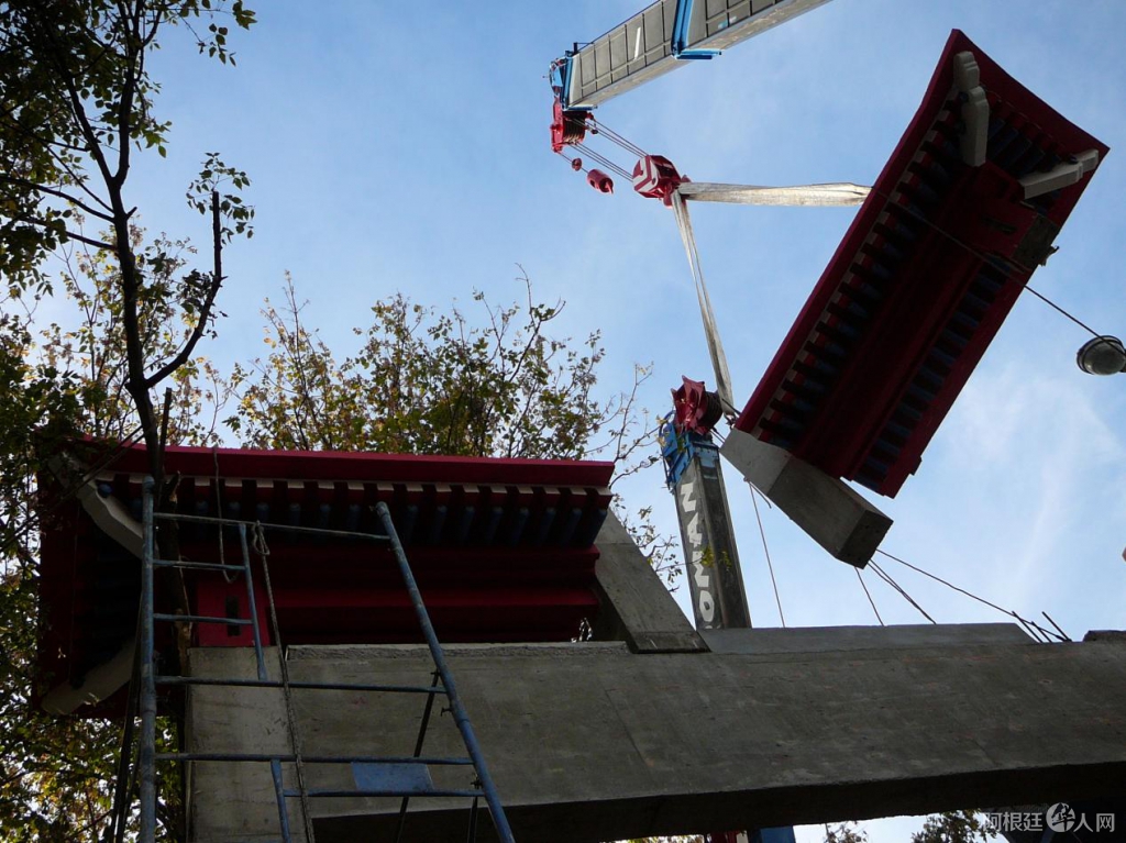 中国城牌楼从吊装到构件安装完毕,历时33个日日夜夜,牌楼主体完工。