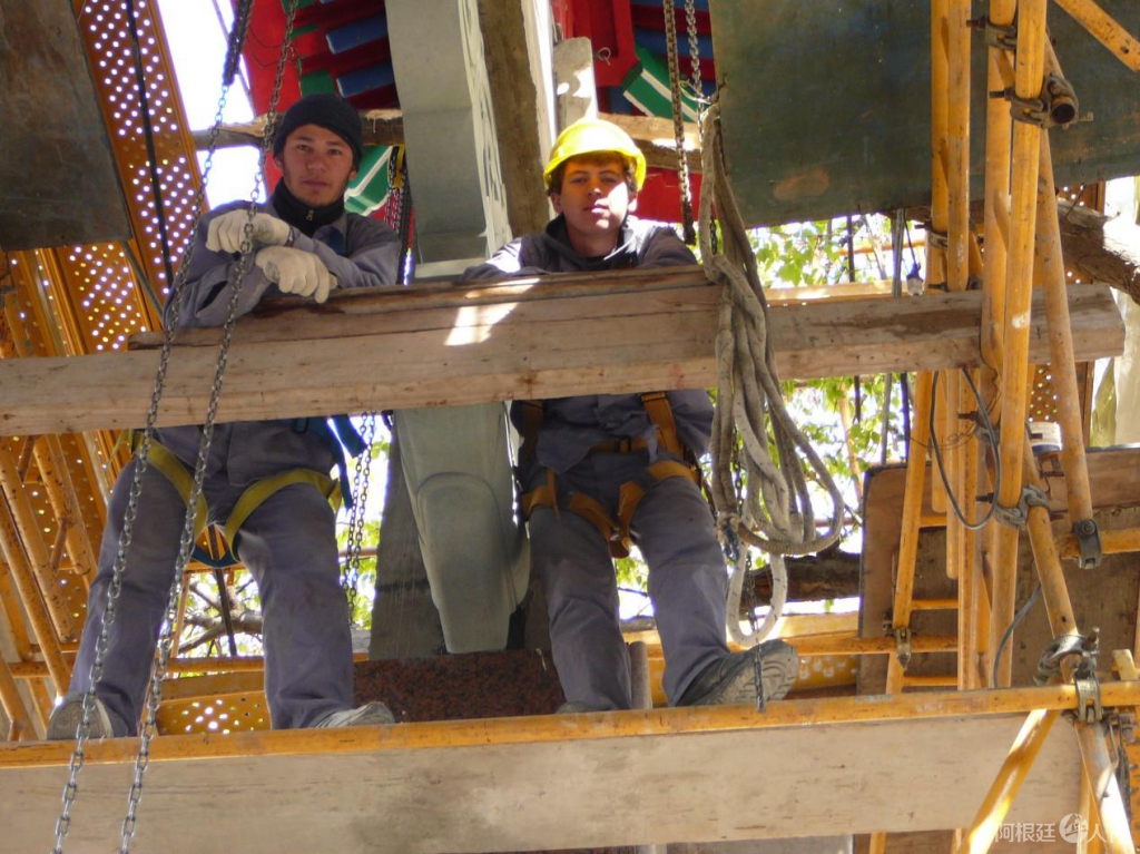 施工期间,翻译张振爱先生(左)每天都按时到达施工现场。张翻译是非常辛苦。他几乎寸步不离地跟在古建筑设计师黄世春先生的身旁。把黄世春先生的工程施工的意图,及时转达给建筑师米格尔先生。他除了沟通两国的语言外,还兼职临时采购员。凡附近买不到的材料、配件,他都想方设法到处寻找,买到为止。在生活上,他又成了一位称职的“保姆”。谁爱吃什么,谁什么东西不吃,他都一一记在心里。每天上下午的点心饮料多样化,可乐、汽水、矿泉水,他都会安排得妥妥帖帖的。