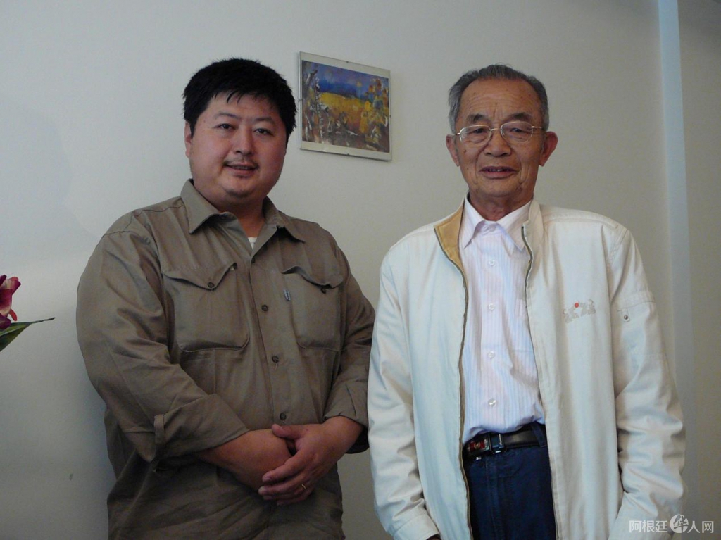 和统会会长袁建平先生(右)和设计师黄世春先生(左)在商讨工作中。在袁建平先生周密主持下,他把中方施工队食宿、交通车辆、航班延期等等事务,安排得井井有条。