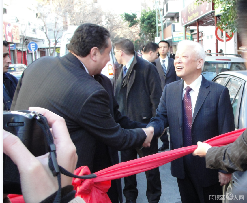 2009年7月8日,中国全国人大常委会副委员长、民革中央主席周铁农(右三),和布宜诺斯艾利斯市文化局长隆巴尔迪(右一),中国驻阿根廷使馆临时代办蔡维泉和政务参赞霍洪海先生,出席了中国街牌楼的剪彩仪式,并为牌楼的石狮和碑亭揭幕。