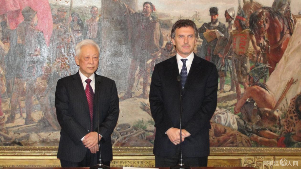 布宜诺斯艾利斯市市长马克里(右2)高度评价华侨华人,为阿根廷社会经济发展做出的积极贡献。对华人社团向布市政府赠送这座,具有东方文化特色的牌楼深表谢意。并强调这座牌楼是中阿两国人民深厚友谊的象征。