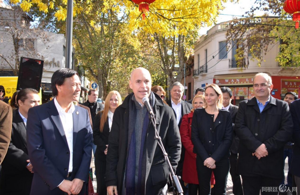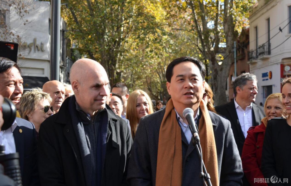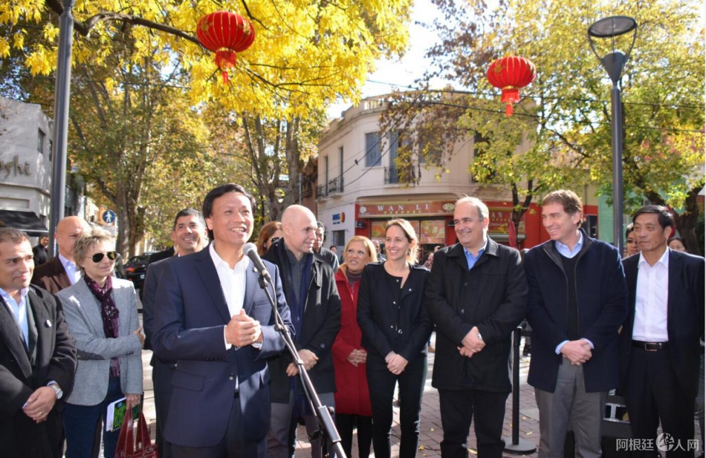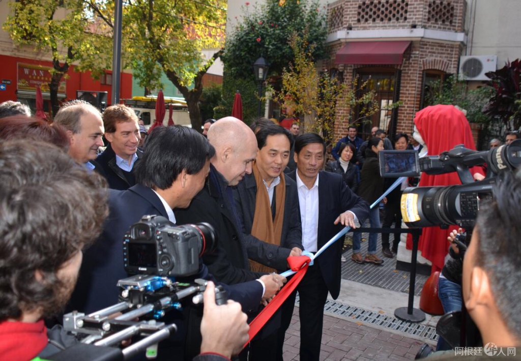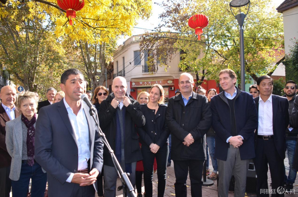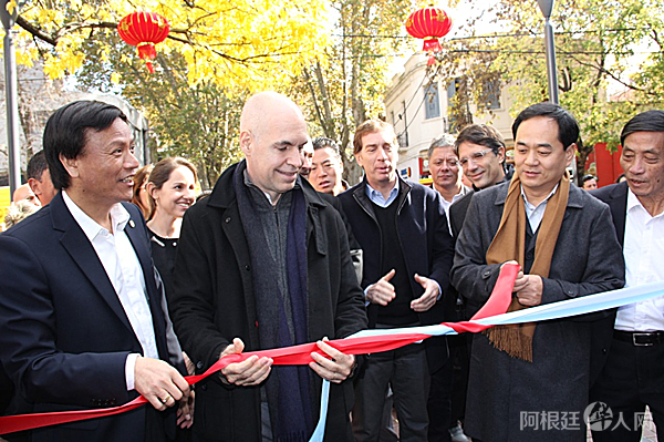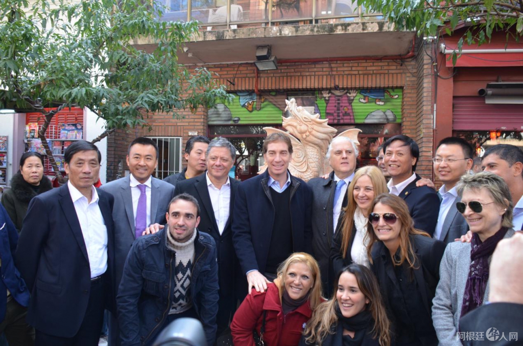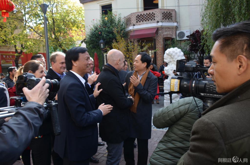 市长拉列塔先生(中间)表示,阿根廷的中国街是目前拉丁美洲发展最好,也是最美的中国街,在这里可以买到各种各样的中国产品,感受中国的文化,还能品尝到美味的中国食品。这些是中阿双方共同努力的结果。