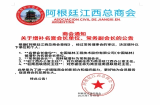 根据《阿根廷江西总商会章程》,经过常务理事会的审议,决定增补以下单位和个人: