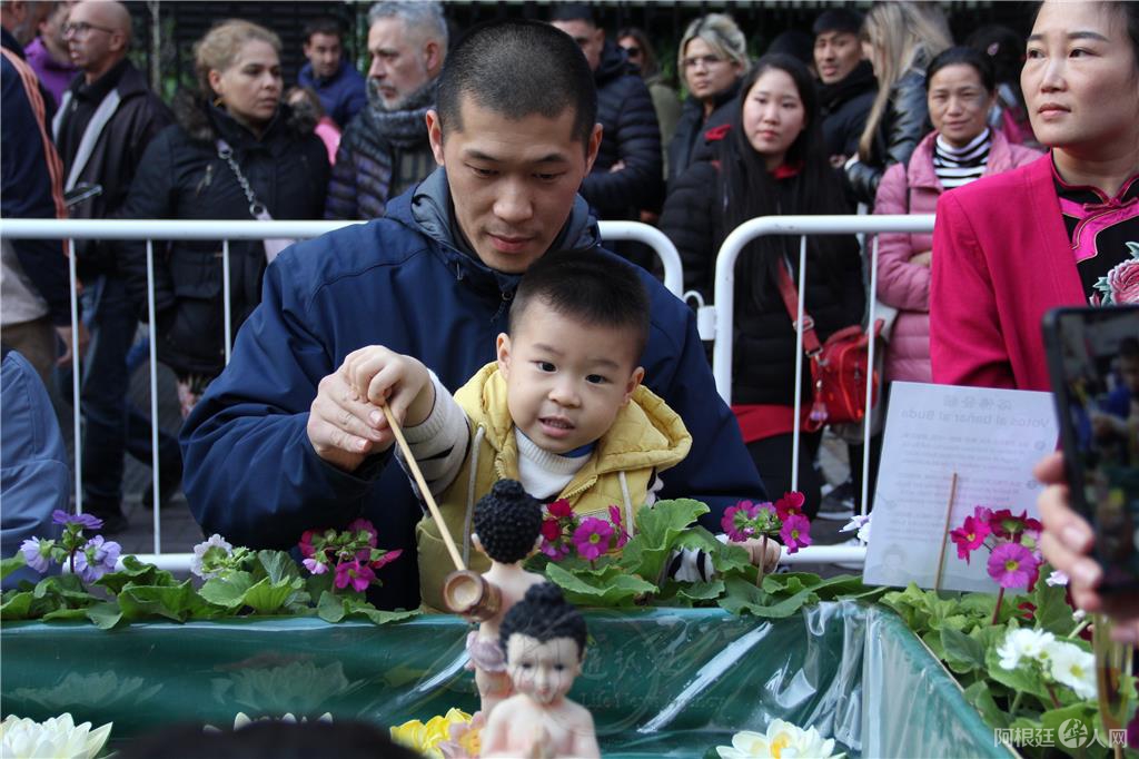 随后,参加者依次上前,用净水为小太子沐浴,象征浴佛者洗涤心灵、净化身心。 民众虔诚庄严完成浴佛仪式,表达对佛陀的崇敬与感恩之情。