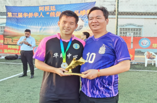 阿根廷中国和平统一促进会会长何文强对参赛的两岸队员的精彩表现表示祝贺,向筹备比赛的工作人员、裁判员及提供赞助和帮助的侨团侨领表示感谢。他希望赛事能让更多孩子喜爱足球,全面发展。