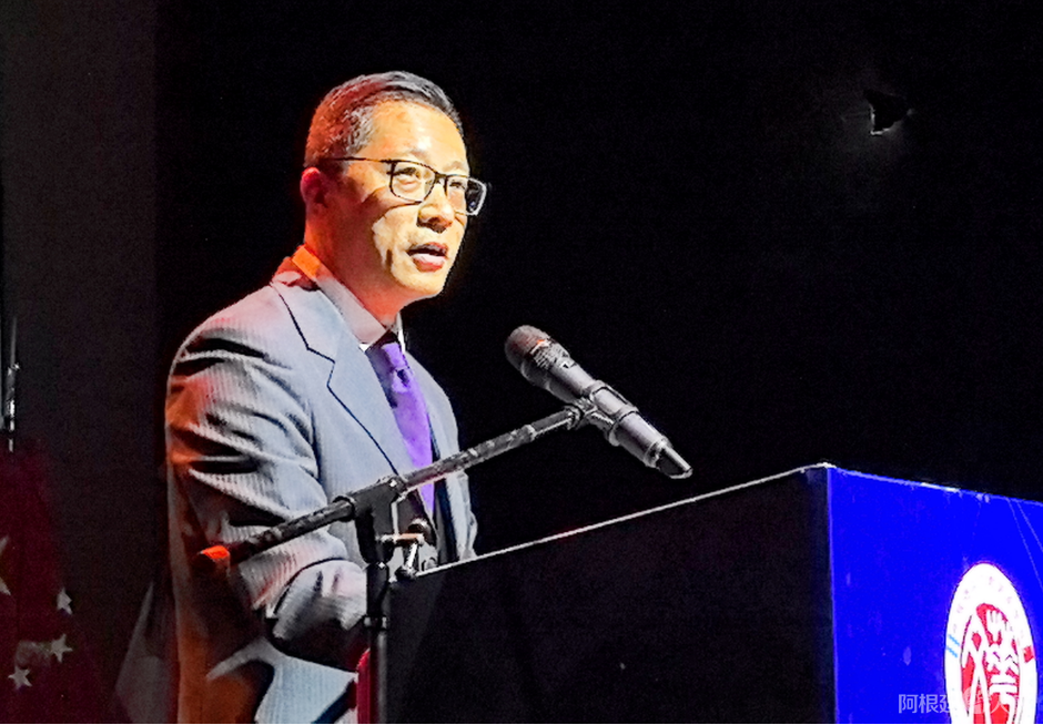 中国驻阿根廷大使馆公使衔参赞王晓旭、中国驻阿根廷大使馆侨务领事黄建国。