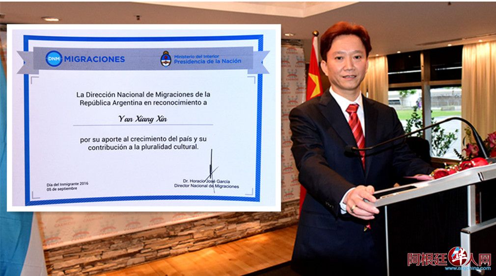 阿根廷华人企业家协会主席严祥兴被阿根廷政府授予“最佳