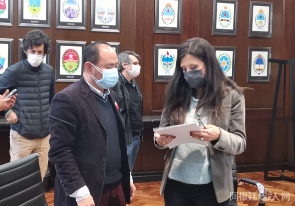在现场郑为辉主任邀请国家商业部国务秘书保拉参加2021年11月19-21日中国渔业协会在安徽省合肥市滨湖国际会展展会,会展设有“一带一路”阿根廷服务中心专属展厅,专门展示阿根廷的产品保拉秘书对郑为辉主任的邀请首先表示感谢,并期待着在第五届中国国际现代渔业暨渔业科技博览会“一带一路”展区开展阿根廷红酒配红虾混搭试吃展示活动!