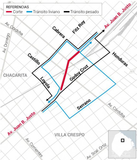 从本周六开始Juan B. Justo大桥将被拆除用来建筑San Martín火车的高架桥,整个工程耗时大约半年时间。由于这个工程将会被完全截断的街道为Juan B. Justo y Cabrera和Castillo,直到明年的3月25号。