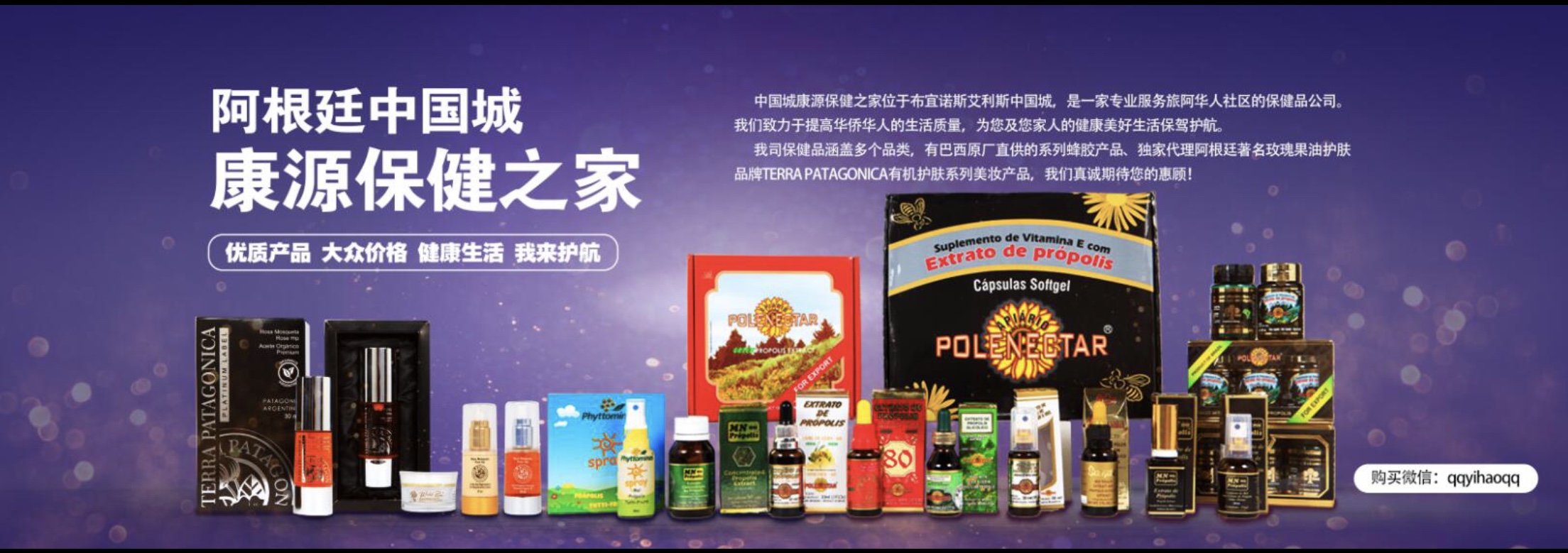 在阿根廷,有这么一个保健品品牌——阿根廷中国城康源保健之家,它是一家专业服务旅阿华人社区的保健品公司。所售产品全部厂家直销,蜂胶产品100%产自巴西,真正的 made in Brazil 。它所提供的“保健品”包含巴西原厂直供的系列蜂胶产品、阿根廷国名护肤品牌Terra Patagonica美肌玫瑰果油、日霜,晚霜等、还有巴西/古巴/智利等国的海参、虾仁、鱼胶、鲍鱼等各类深海干货。