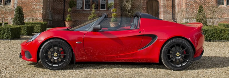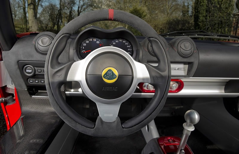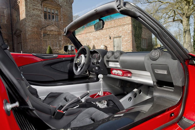 细节:全系配备钱双安全气囊,ABS刹车辅助,车身稳定系统,群动力分配模组,空调,Alcantara翻毛皮赛车桶椅,蓝牙/光盘播放系统,Brembo刹车卡钳,前195/50 R16 后 225/45 R17的yokohama轮胎。Elise Sport与Sport 220车型配备织布可折叠顶棚,而Elise Cup车型则需要选配、