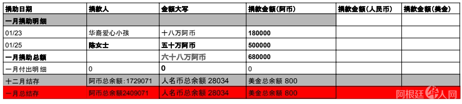 1月捐款明细