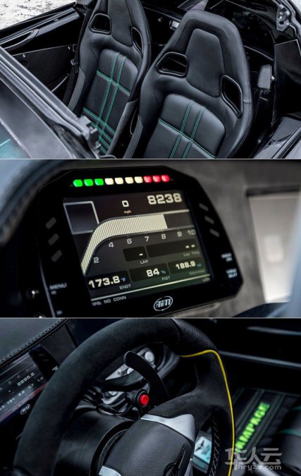 内饰方面,Beast Alpha X Blackbird采用了两张碳纤维材质背板的赛车座椅,绿色的缝线也凸显了其与众不同。中控部分,新车采用了一块赛车液晶仪表。除了时速和转速之外,该仪表还可以显示换挡提示、水温以及圈速等信息。