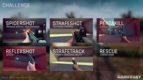 在《目标实验室》中,玩家可以在不同场景下使用不同武器与ai进行训练,游戏会对玩家的表现进行实时跟踪和分析,然后对玩家的表现进行点评,并列出策略指导。项目包括速度、准确度、精准度、反应速度、视觉敏锐度、决策速度、适应性和视觉注意力,几乎囊括了一切FPS需要的基础能力。