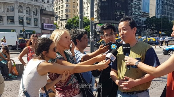 张朋团长正在接受阿根廷媒体的采访。