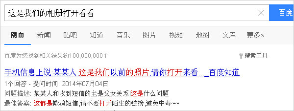 【PConline 资讯】最近,一条名为“我们的照片”的短信火了。不因别的,只因它是一条“钓鱼短信”,简单来说就是诈骗短信。短信内容为“这是我们的相册打开看看”后边跟的是一个链接,一旦你手贱点了这个链接,幕后黑手便能获取到你手机里的个人数据,当然这当中不乏诸如银行账户密码这样的超敏感信息。大家切记不要打开。