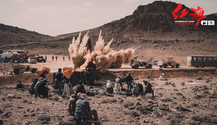 真实的另一个体现是视觉效果,因为《红海行动》是实战题材,场景真实很重要。这次明显看出电影并没有用蓝幕而是实景拍摄。据了解,剧组一开始是想去约旦取景,因为约旦有很强烈很浓的战火边缘气息,后来因为剧组基本工作人员就有500人,考虑整体安全问题就去了北非摩洛哥。拍摄中的战火、炮弹都是真的,全部用了真炸药来爆破,炸掉的楼是真的整栋都炸掉,所以视觉感受非常强烈,看的时候心噗通噗通跳。