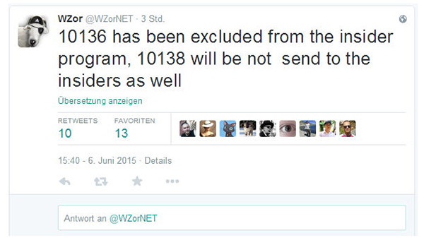 7月29日,Windows 10的正式版本就要和我们见面了,还有将近一个多月的时间,这段时间内Windows 10内测预览版还会继续推送吗?俄罗斯爆料大神WZor今天在Twitter上表示,微软将于7月12日到16日举办的WPC2015世界合作伙伴大会上,向合作伙伴推送Windows 10 Build 10138版,这将是RTM版之前的最后一个版本。