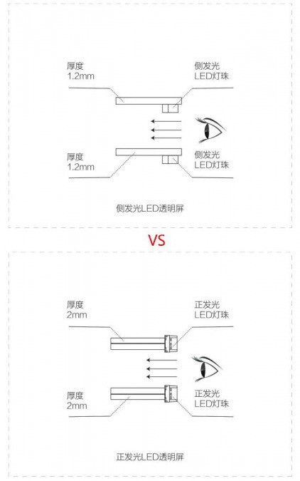 和电视相似,LED透明屏也有着正发光与侧发光两种形态,从可视角度、发光均匀性、通透率等方面侧发光都有优势,这也是奥运团队选择侧发光的原因。