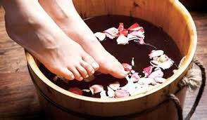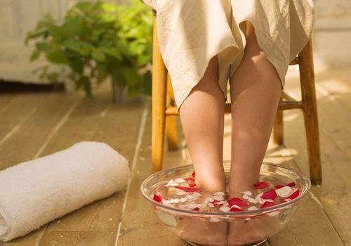 泡脚时,水温不能太热,以40℃左右为宜,泡脚时间也不宜过长,以半小时左右为宜。由于金属易冷,所以泡脚的容器最好用木盆,其中可放一些有利于活血的丹参、当归;或放些连翘、金银花、板蓝根、菊花,以起到降火清热的作用。
