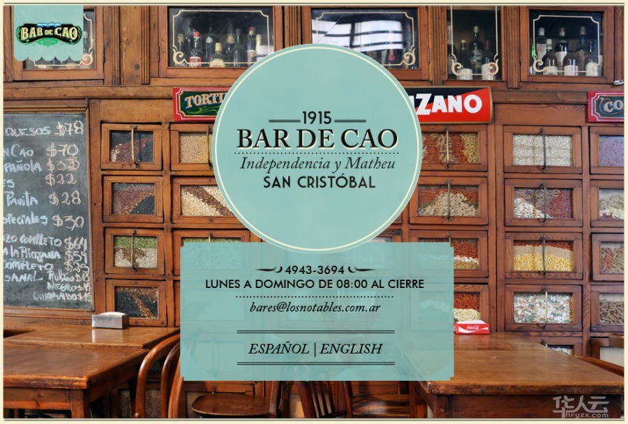 在布市圣克里斯托瓦尔区(SAN CRISTOBAL )有一间历史悠久的酒馆,这间名为BAR DE CAO 的老酒馆现如今已被列入布市物质文化遗产名录,这不仅是一种荣誉更意味着其已成为布宜诺斯艾利斯文化的一部分。