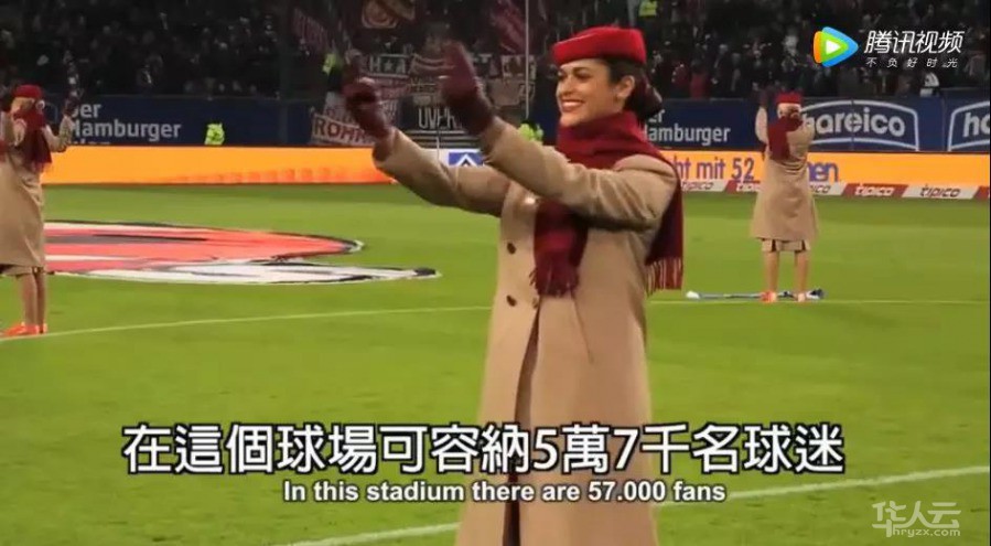 之前在葡萄牙的足球赛上,联酋航空就展示过这样的一场球场宣传秀。仅用了 8 名空姐,Youtube等社交网络上上线不足 24 小时便超过 600 万人观看