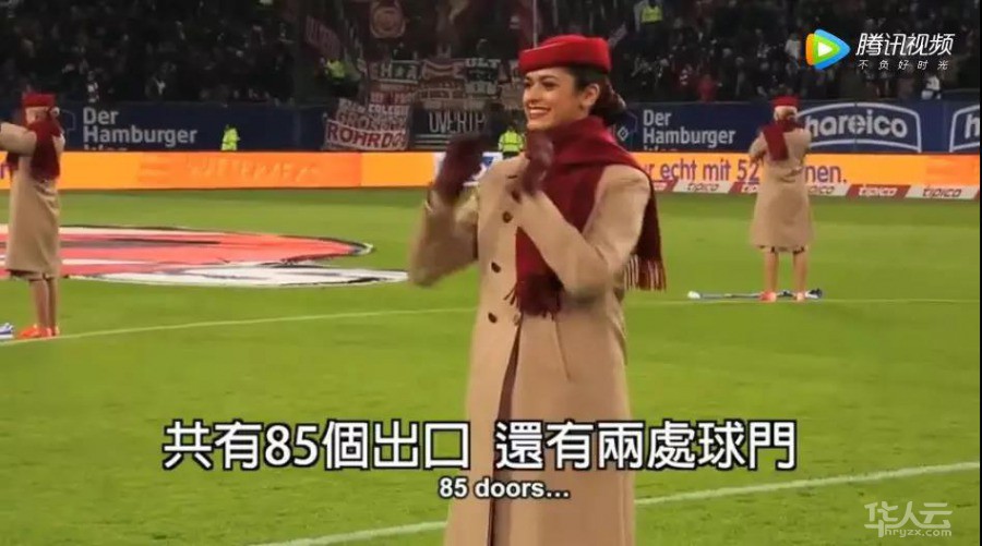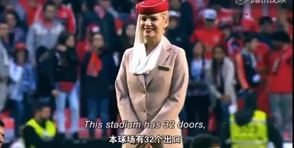 这是阿联酋航空很有创意的一次宣传秀,空姐们跑到了德国的「禾克斯公园球场」把整场球赛当作一次航行,以演示「飞行安全须知」的形式向球场观众演示「足球场安全须知」