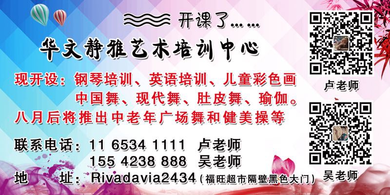 本周五华文静雅推出肚皮舞课程啦!魅惑性感妩媚妖娆,做一个柔美媚人心窍的小女人吧!还在等什么,大家快快行动吧!现开设:钢琴培训、英语培训、儿童色彩画