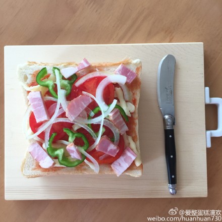 吐司披萨做法🍕:吐司番茄酱披萨芝士(queso)西红柿青椒洋葱丝培根(jamon)披萨芝士(queso)沙拉酱(mayonesa)烤到披萨融化黑胡椒...