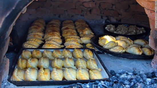阿根廷最受欢迎的街头小吃。名字翻译为“裹着面包”。顾名思义,面团做的口袋里面可以加任何你喜欢的馅料。鸡肉、芝士,亦或是甜玉米,当然其中最受欢迎的还是牛肉馅。不同地区的恩帕纳达斯中还会添加不同的调味料,每一种都风味独特。