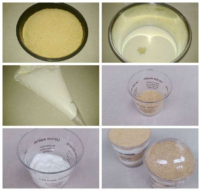 原料:淡奶油150克、消化饼干200克、白糖25克。做法:1、消化饼干擀面棒压成末; 2、淡奶油加入白糖,打发; 3、将打发好的奶油装入...
