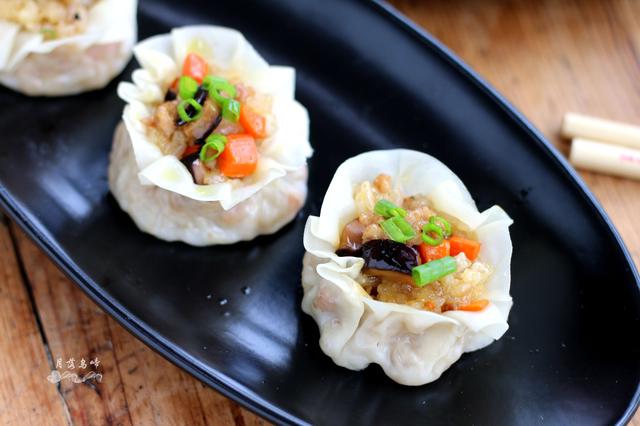 想自己做,又觉得擀皮麻烦。后来看到有人说用饺子皮也可以,擀面杖稍微擀大一点就好。立马回家试了,果然可以啊!而且,烧麦很好包,随意捏一捏就好,简单又快手!