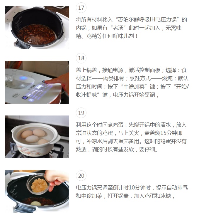 因为使用了量不少的酱油,加上“苏泊尔鲜呼吸IH电压力锅”的低盐烹饪技术,这款卤肉汁根本不需要加盐!