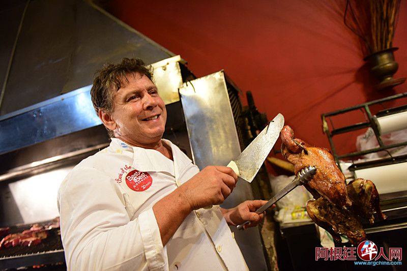 在阿根廷的烤肉店吃中国烤鸭,对居住在阿根廷的华人来说还真是一件新鲜事。Carlos Paly Lopez先生认真研究了好久,结合阿根廷烤制方法,终于烤出了色香味俱全的中式烤鸭。到他店里品尝过烤鸭的华人朋友赞不绝口,非常敬佩Carlos Paly Lopez先生高超的技艺。