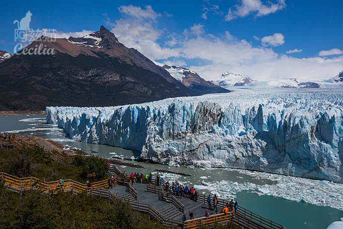 冰川已经超过了20万年的历史,被潘帕斯高原的许多人称为“上帝的杰作”。凭借其自身的神奇震撼,吸引着来自全世界的到访者。冰川国家公园特意修了一条栈道,直达壁立万仞的“冰墙”跟前,犬牙相错的冰峰历历在目,能够如此近距离地观看巨大冰川,世间罕见。皑皑冰川连绵起伏,使人豪气顿生生。