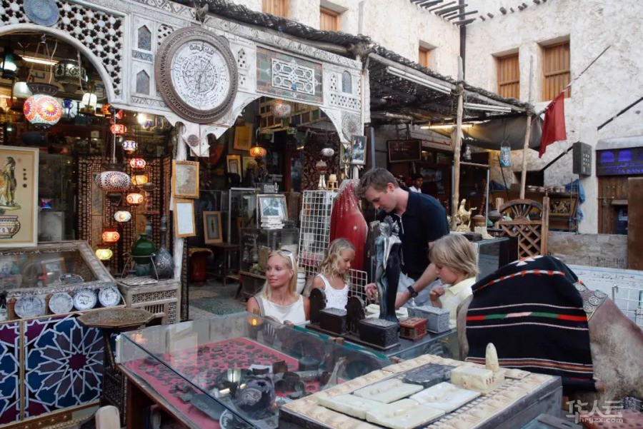 市集上商品琳琅满目,空气中弥漫着香料和Bukhoor 熏香的味道,卡塔尔当地妇女们用熟练的手法将骆驼毛或是山羊毛编织成传统贝都因地毯;另外一侧的妇女正在认真的进行着海娜传统艺术彩绘 ......熙熙攘攘的小巷毫无保留地展示了卡塔尔人民生活的原本模样。